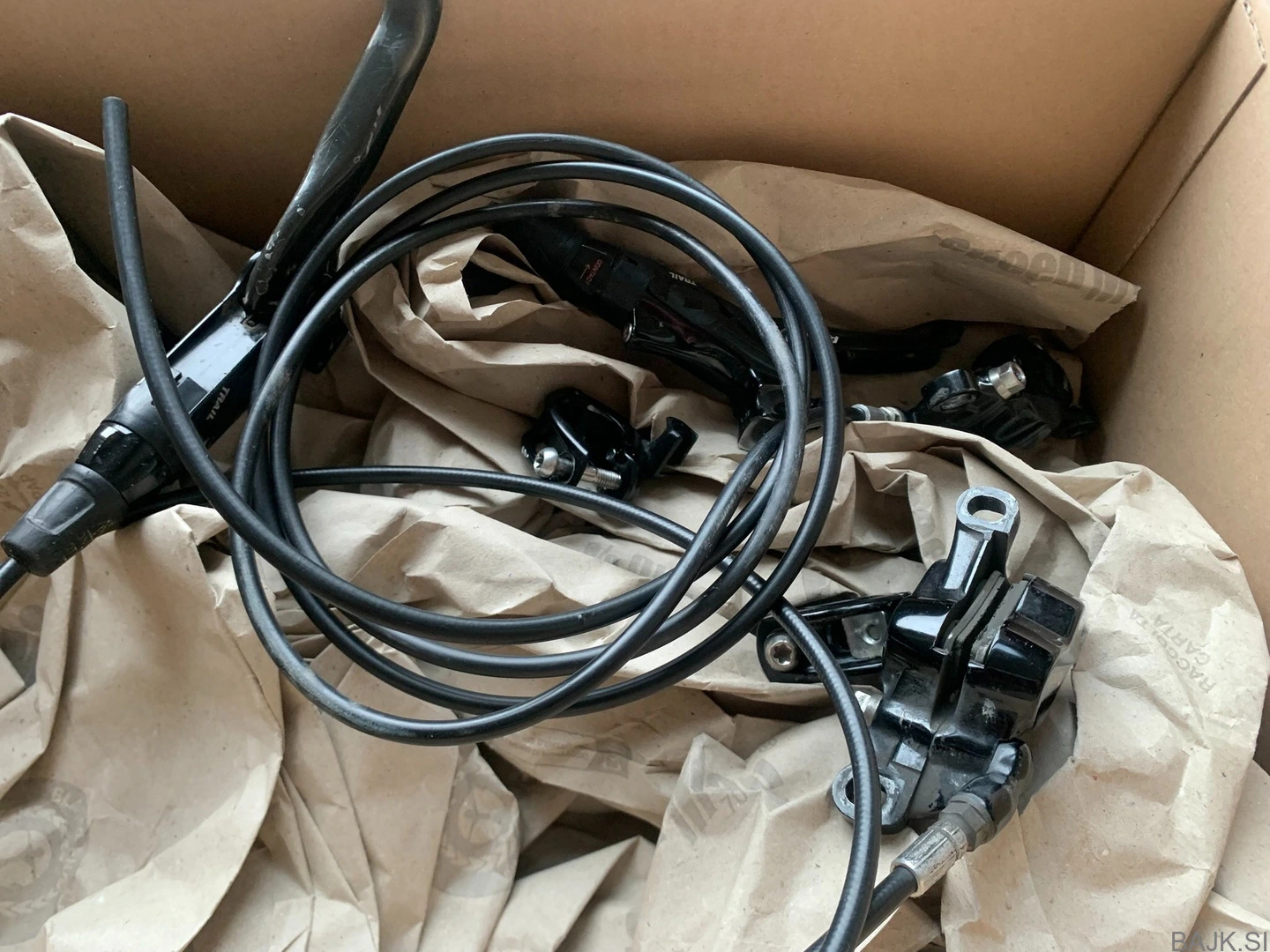 Prodajajo se zelo dobro ohranjene Avid trail XO bremze. V sprednji čeljusti so še dobro ohranjene sinter zelene pakne (25€) in zadnji sinter modre (25€). Zraven pridejo objemke z matchmakerji. Dober kompromis med močjo in težo za bremze.