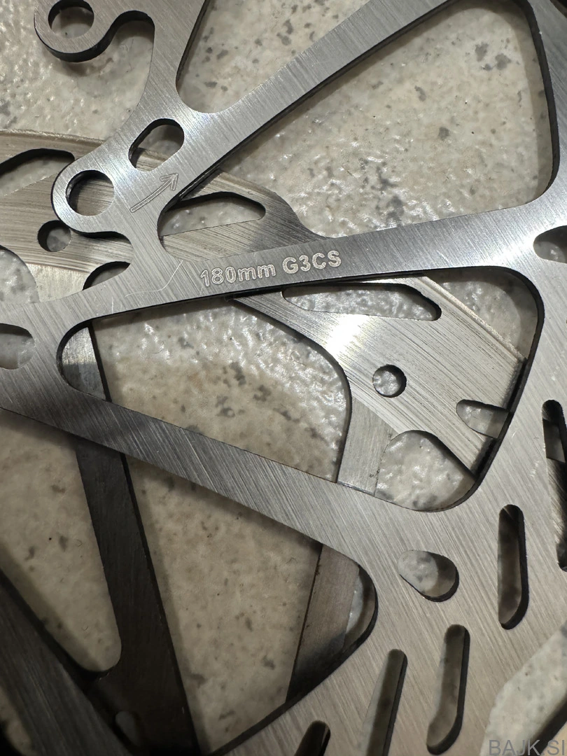 Prodam dva rotorja, niso zviti, ker zdaj imam CL pritrditev. Možna menjava za Shimano CL 180 mm ali 203 mm.