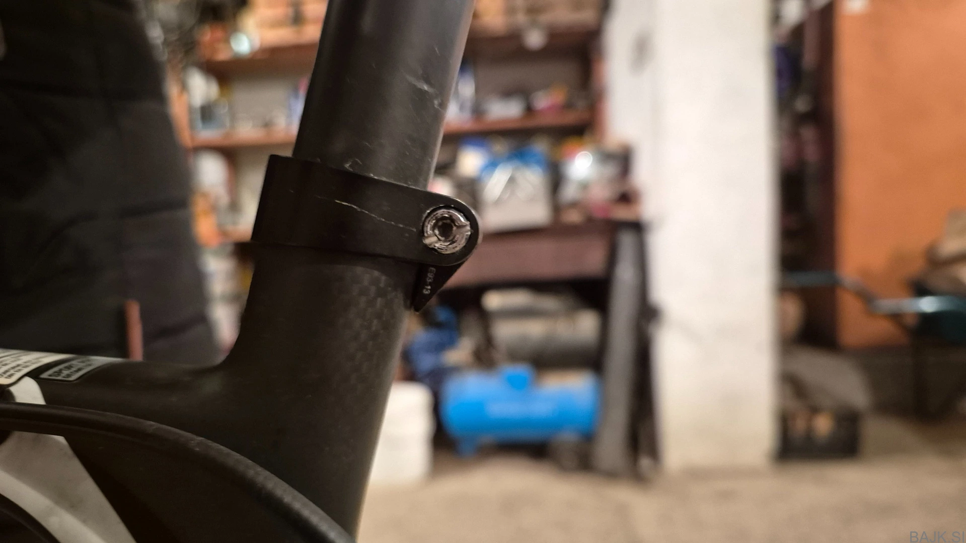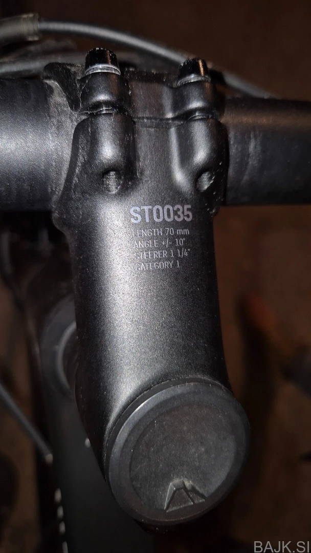 Ima prasko na zadnji osi na quick releasu in pa šrauf za višino zica je predelan saj se je HEX glava na njem obrabila.