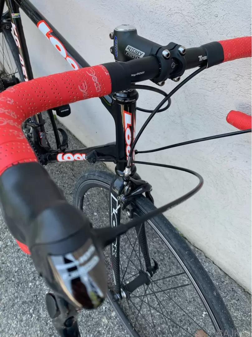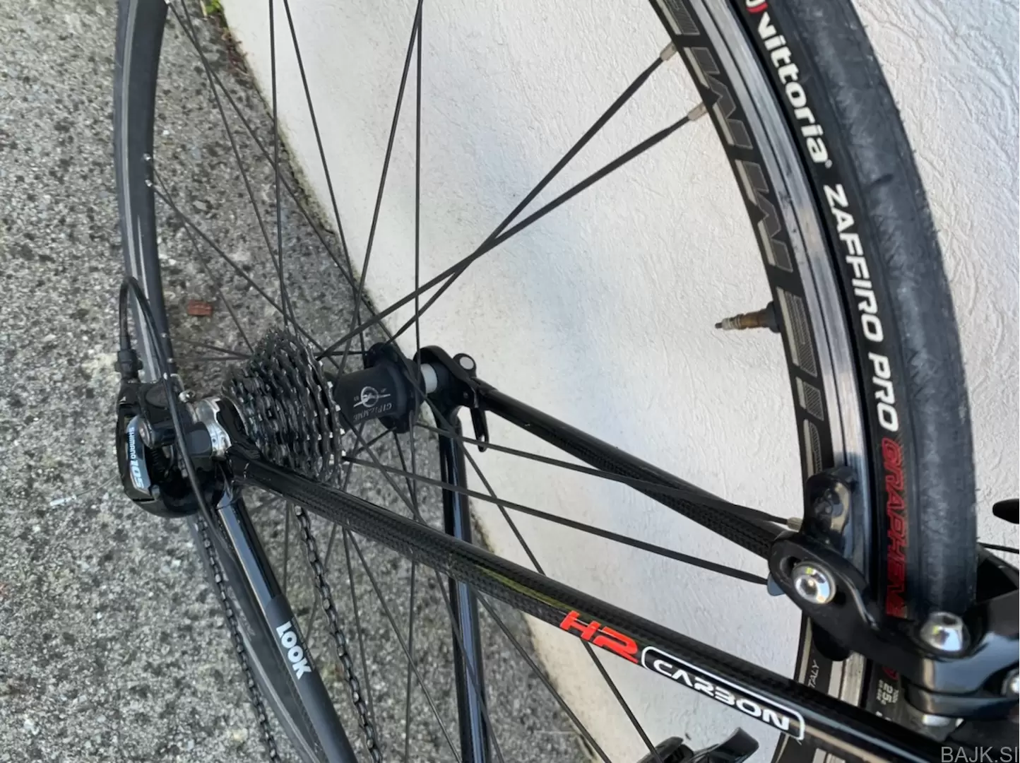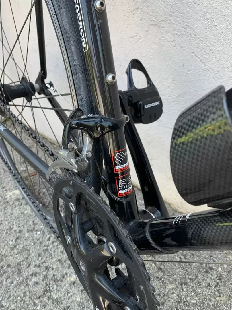 Zelo malo vožen, večino časa je stal v garaži, ker mi velikost od začetka ni ustrezala in sem vozil gorska kolesa. Ima nove gume, trak in imam različne fajfe na izbiro (te so posledica iskanja pozicije na kolesu) Zraven original Look pedal po želji dobite brezplačno tudi flat pedale.