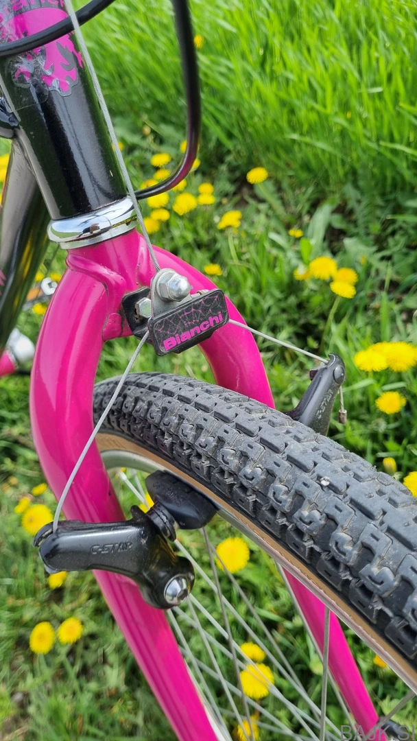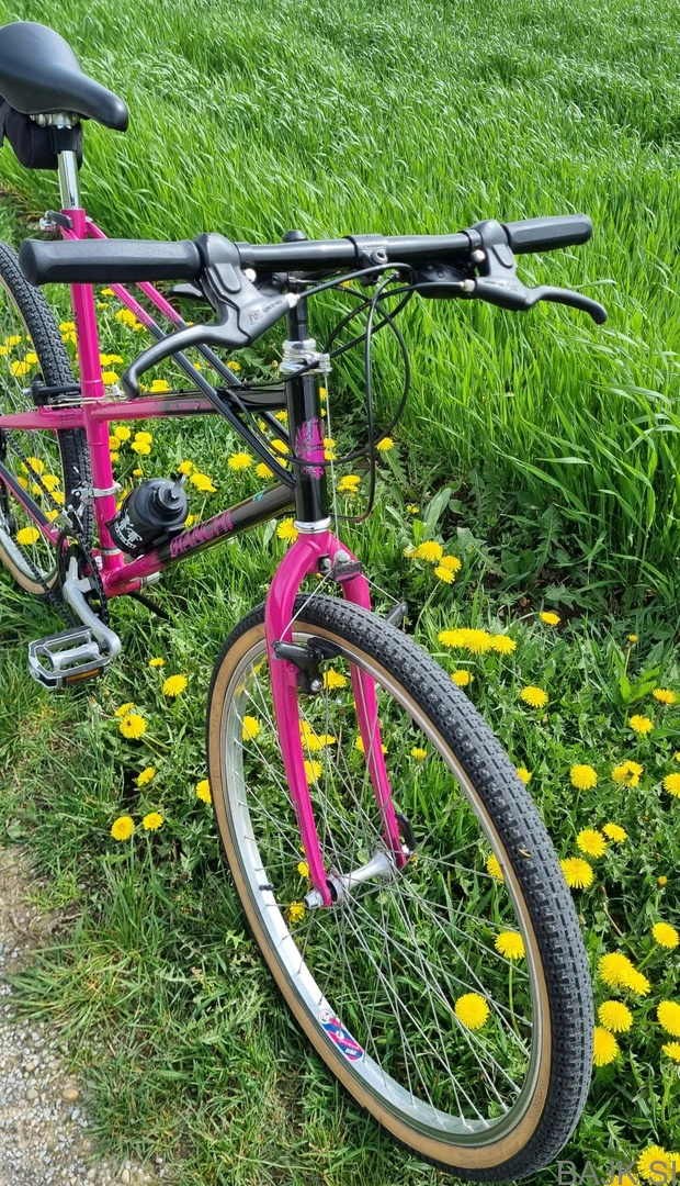 Prodam odlično ohranjeno vintage gorsko kolo Bianchi meta iz 90' ,26"kolesa,jeklen okvir-velikosti 54cm seat tube / 56cm top tube primerno za višino kolesarja 175-185cm, komplet komponente SR Suntor 3x7. prestav.