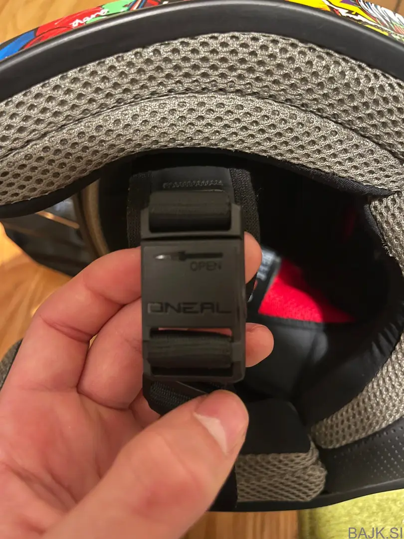 Velikost čelade je otroška Large. Ima O'Neal Fidlock® Magnetic Closure, kar pomeni, da se trakec pod brado magnetno zapre. Šilt čelade je tudi možno odstraniti, ali pa prilagoditi pozicijo. Ima tudi dobro prezračevanje. Podlaga znotraj čelade se da odstraniti in oprati.